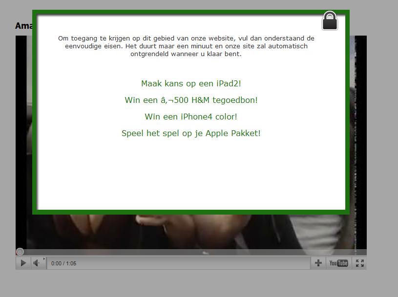 You need to fill in a survey to see the video. Of course you might be attracted by the chance of winning an iPhone, but it is all fake.