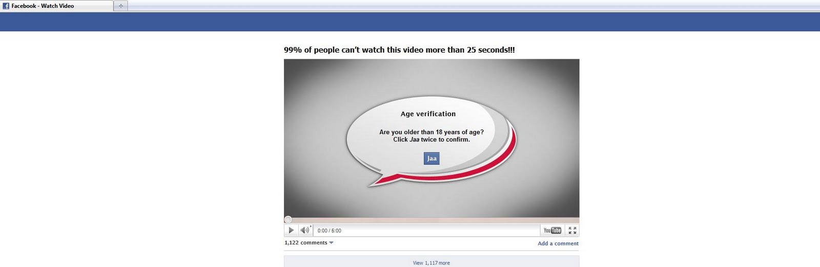 It looks like a legit Facebook page and a Youtube video, but in fact it is all fake. If you click on "Jaa" (which appears to be Finnish for "Share"), you'll see the following page: