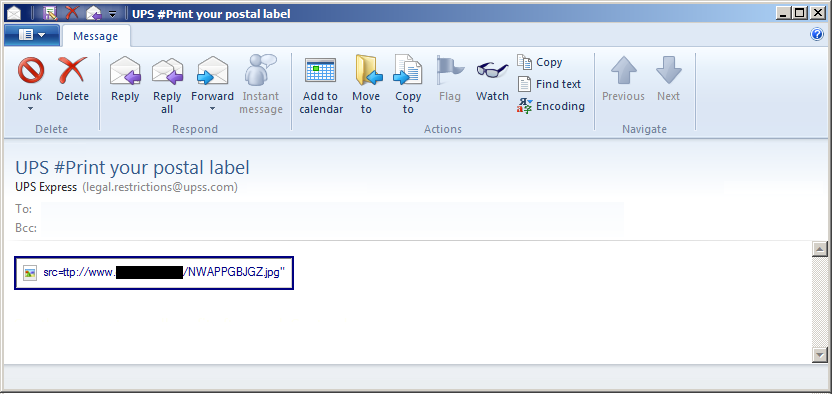 Yes, you've read the title right. Not the usual spam/malware attachment, but in fact just a picture of UPS... which of course is clickable.