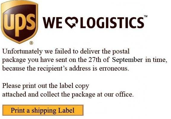 Subject of spam email: UPS #Print your postal label