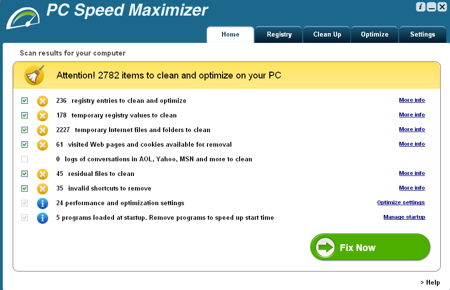 PC Speed Maximizer, unlike "real" scareware does not have the following behaviour: