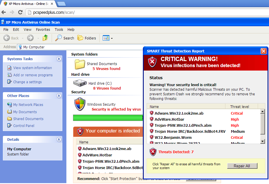 | "Virus infections have been detected!" - XP Micro Antivirus |