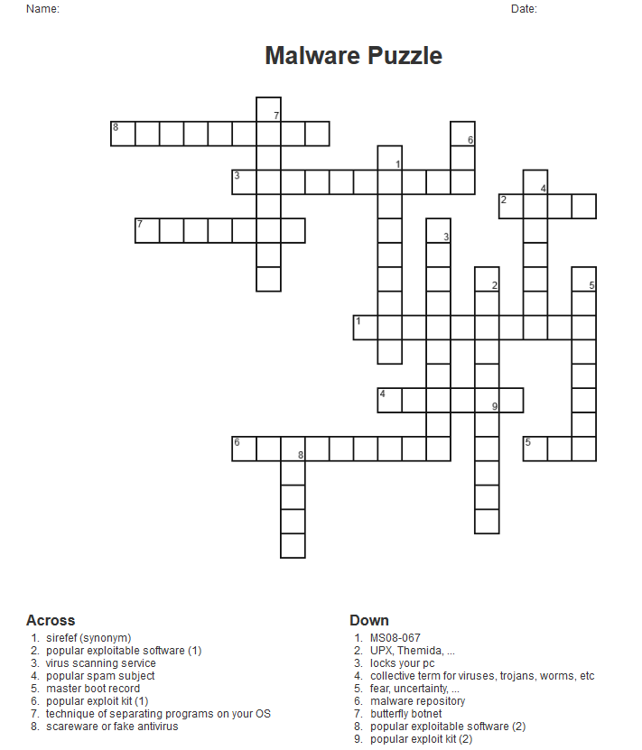 A malware (crossword) puzzle you say? Yes! Why not?