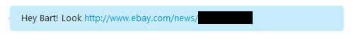 In the past, malware has spread via Skype, but this is the first time I'm seeing a scam presented in this way. I have contacted Skype to ask how they were able to hide the actual website behind the eBay link, as I do not know - if you do, be sure to let me know in the comments.
