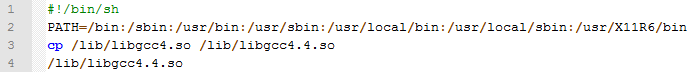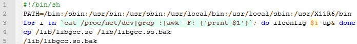 As said earlier, delete these files manually, as well as the file(s) mentioned in the scripts. (in this case: /lib/libgcc.so.bak, /lib/libgcc.so and /lib/libgcc4.4.so.) Note that these files are not related to GCC's runtime library and thus can be safely deleted. It's just another way how the malware tries to hide itself.