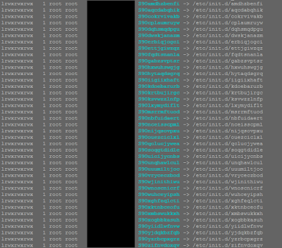 Secondly, another indication is seeing processes running with random names and sudden new executable files created in /etc/init.d/ or /usr/bin/ (see example below). New entries will be/are added to your crontab as well (/etc/crontab).