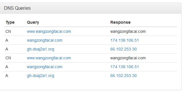 | Connections to wangzongfacai.com and dsaj2a1.org |