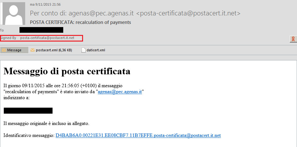 Note that with PEC (Posta Elettronica Certificata), a user can send a signed message even when the mailserver is not compromised. PEC means the server signs a message to ensure timestamp and sender, not content. More on PEC here (ITA) or here (EN). See also point 2 and 4 in the Prevention tips above.