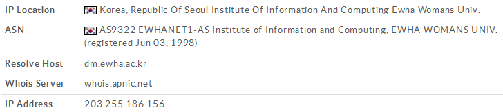 | IP location: Korea (VirusTotal) |
