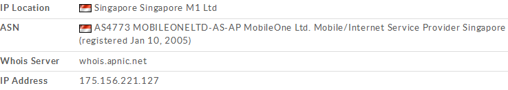 | IP location: Singapore (VirusTotal) |