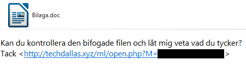 Attached is a file called Bilaga.doc or Document.doc. Other variations are possible, depending on the language (in this case either Swedish or English).