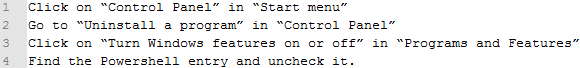 - Consider disabling PowerShell if you don't need or use it. There are two possible options: