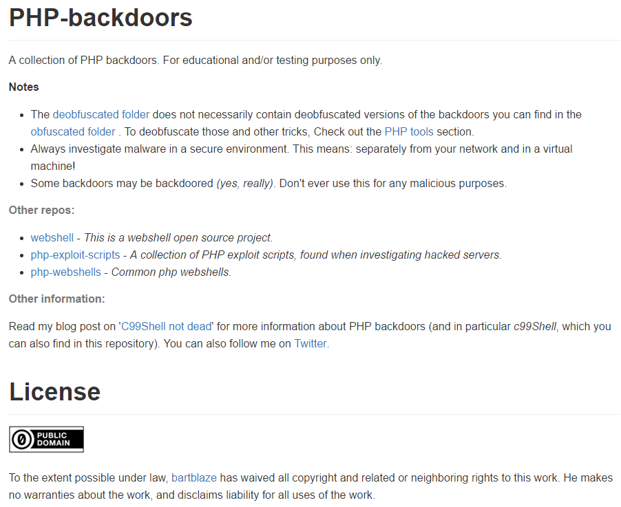 Just a quick post to announce I've set up a GitHub repository with a collection of PHP backdoors for educational and/or testing purposes only: