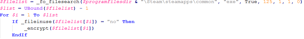 | Figure 4 - Executable files in Steam's games directory will be encrypted |