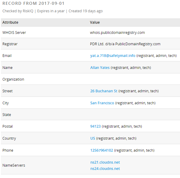 You may have noticed vahfebankofamerica[.]net in there, it is relatively newly registered (2017-09-12), by a 'Megan Quinn', with email address of qum65@binkmail[.]com. I doubt an actual Ms. Quinn would use this email address. It may try to convince users of its legitimacy, alluding it is part of Bank of America's website. However, nothing could be further from the truth.