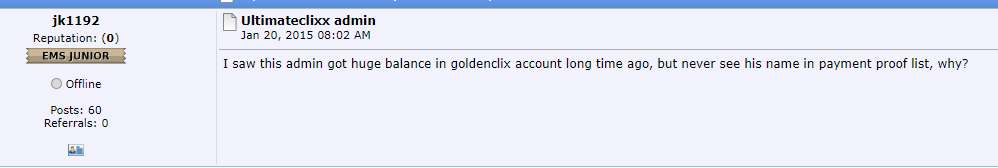 In Figure 5 above, you can see a specific post from 'mhmadfarajalla', hereafter referred to as Mohammed, explaining how he joined Goldenclixx from 2013 onwards, and made quite some investments. This reply was motivated by a user questioning their legitimacy: