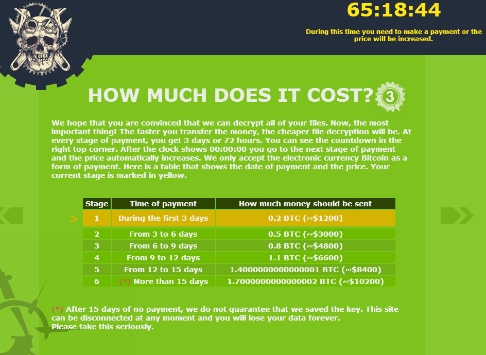 Interestingly enough, this variant has removed all references to Maktub. The figures below represent lock screen and payment portal, when stepping through.